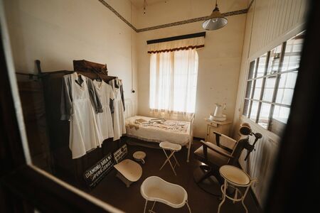historic hospital room with tool kit surgeon ancient doctor tweezers scalpel