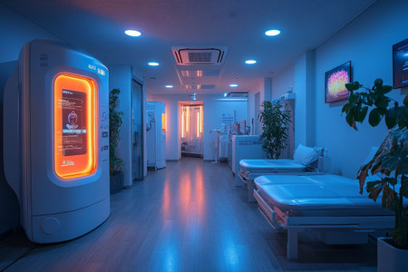 Clinic interior futuristic medical beds, relaxing atmosphere