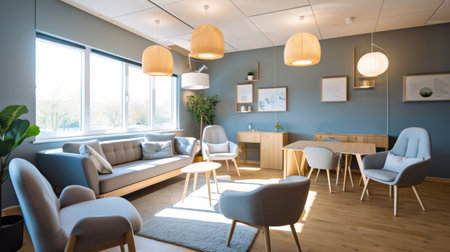 Inspiring office interior design Scandinavian style Corporate Office with Open Space Design featuring Natural elements architecture. Generative AI AIG 31.