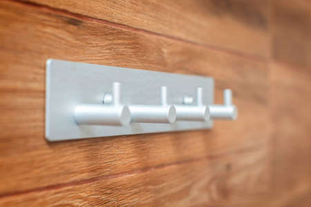 Stainless steel hooks for clothes on wooden wall