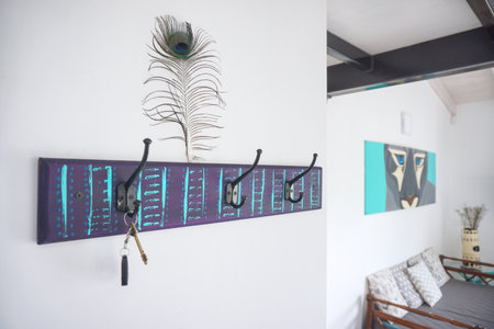 Wall in House with Scarf Hanging on Coat Rack Hooks Abstract