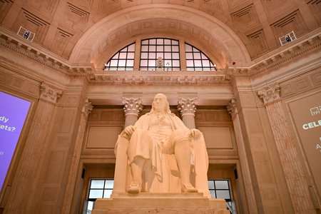Philadelphia, Pennsylvania - May 26, 2024: Ben Franklin in the rotunda of The Franklin Institute. Sculptor James Earle Fraser.