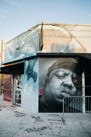 Graffiti art on wall in graffiti design district Wynwood in Miami, Florida.