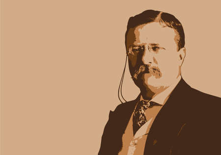 Drawn portrait of Theodore Roosevelt, the famous American politician, President of the United States.