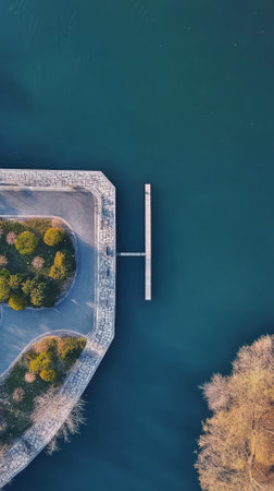 Generative AI : Aerial view of a ship docked along a small island in Warmond The Netherlands