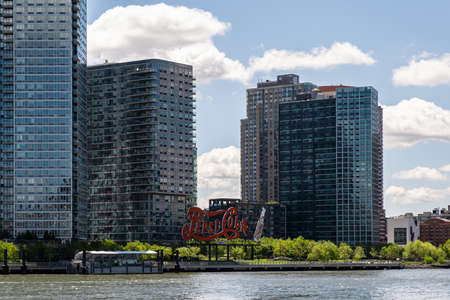 New York City - USA - May 15 2019: Long Island City apartment buildings with Pepsi Cola sign view from Roosevelt Island