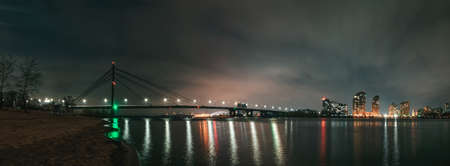 Panorama of the night city of Kiev. North Bridge and Obolon district.