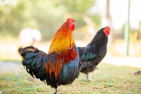 Rooster on traditional free range poultry farm