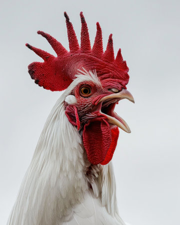 portrait of a carking white cock (gallus)