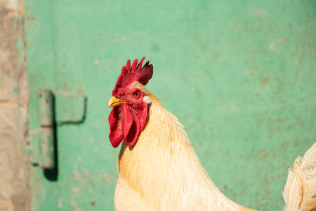 Proud rooster or cock with red facial wattle and comb