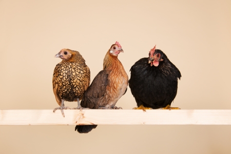 Flock of chickens perching over a pen
