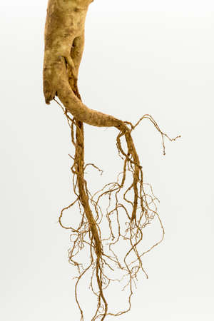 Close up of roots of a tree on a white background, macro