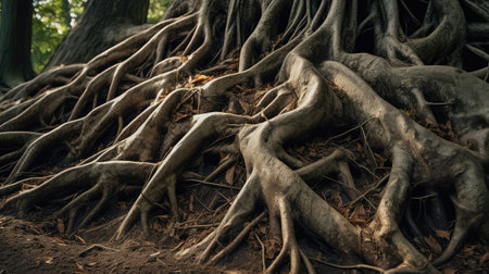 Growing tree roots, generative AI realistic illustration