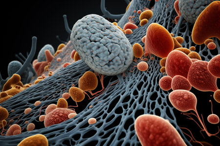 Explore the unseen with this captivating stock illustration capturing bacteria and virus cells in a petri dish. Generative AI brings the microscopic to life.