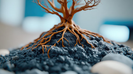 Close-up of plant roots thriving in nutrient-rich, fertile soil. Witness the beauty and vitality of nature's underground marvels