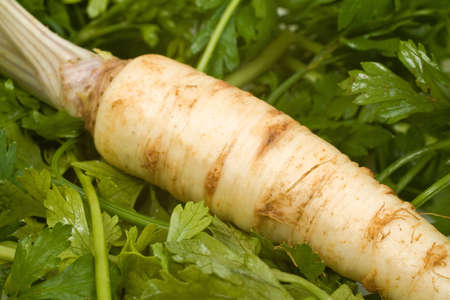 Root vegetables such as parsnips, focus on the pile of fresh Root vegetables such as parsnips