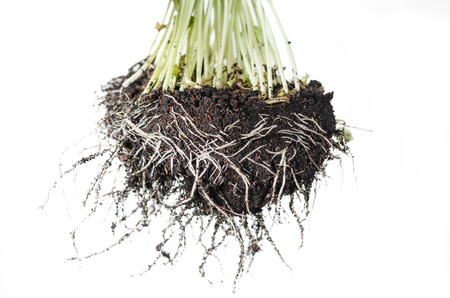 Image shows in detail the root system of a plant isolated on white background (Root)