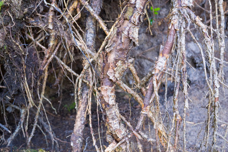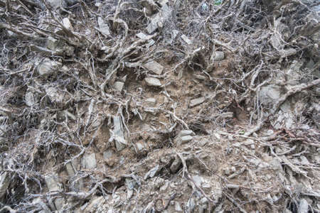the destroyed and bound roots or rhizomes of trees closeup for an abstract and natural vegetable background