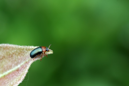 Image of green beetle on green leaf. Insect Animal. Insect Animal