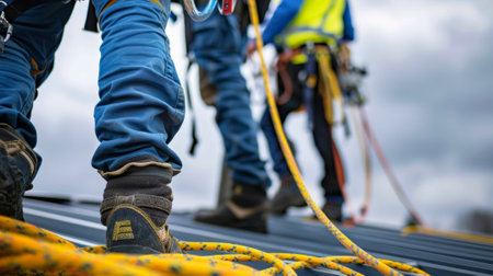 climbing gear and ropes on skyscraper rooftop, created with generative ai