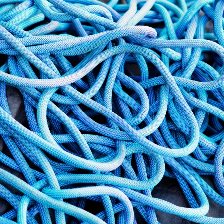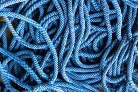 blue rope for climbing, background image of the rope for active sports, climbing and mountaineering equipment