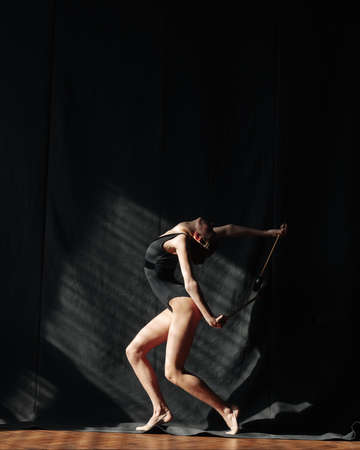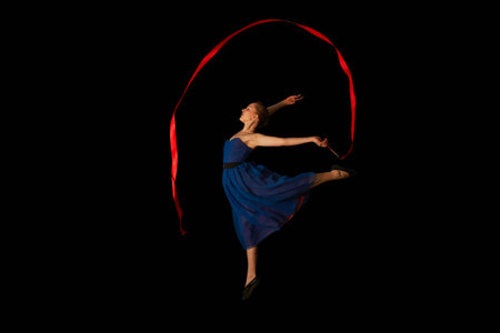 Dancer with ribbon on black background