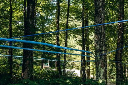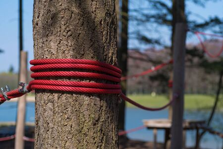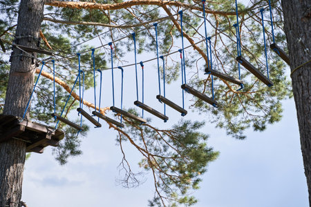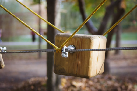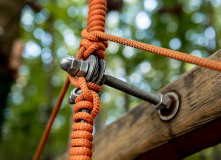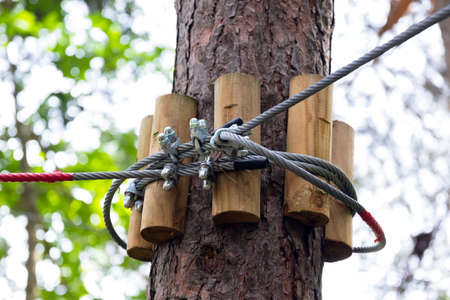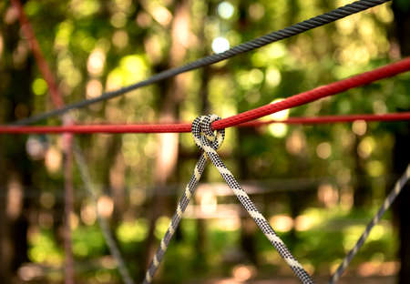 Detail of rope park in a forest. Adventure summer park.