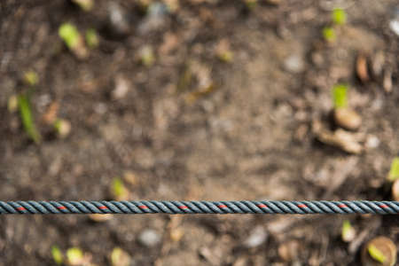 Synthetic rope crossing the image diagonally. Outdoor fitness training equipment.