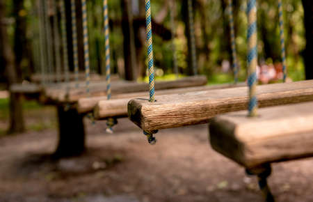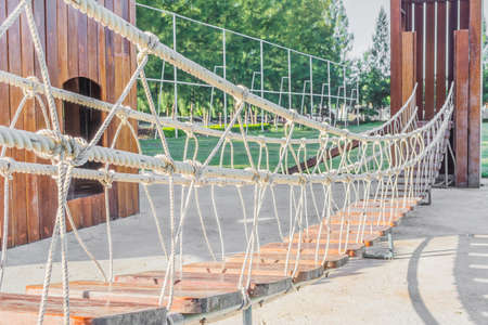 Elements of a rope town in the park. An empty rope town in the forest.