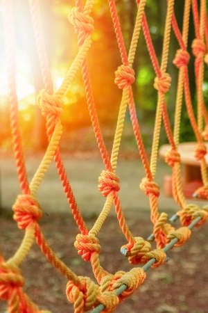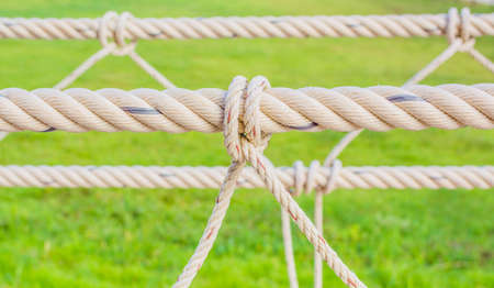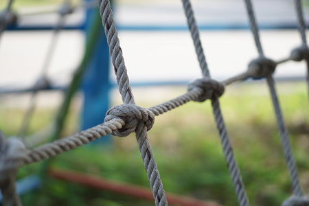 Close-up of rope knot line tied together with playground background.selective focus.