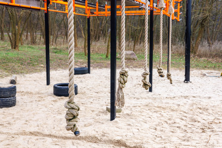 Rope obstacle course in the boot camp on a sunny day