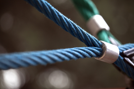 Rope park in the city. Knot and connection of insurance closeup