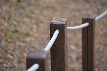 A wooden fence connected by a white rope