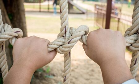 boy's hand holding a rope at playground