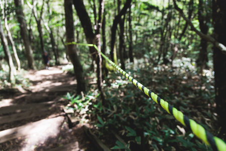 image of yellow rope fence closeup in sunny day.