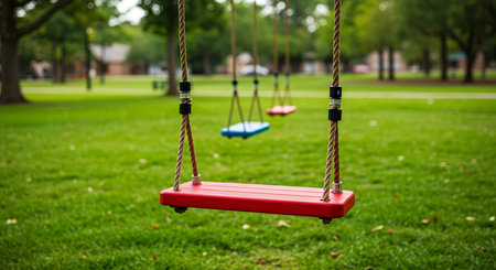 close-up of swing set with empty swings swaying in the breeze, created with generative ai