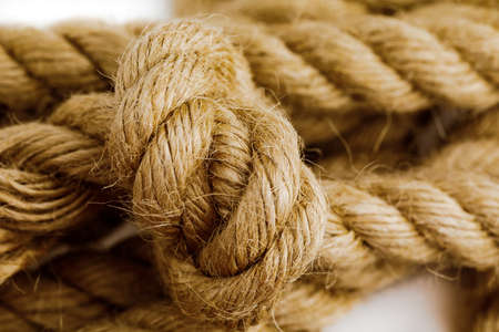 Abstract composition, texture details of thick and strong rope isolated on blurred background,