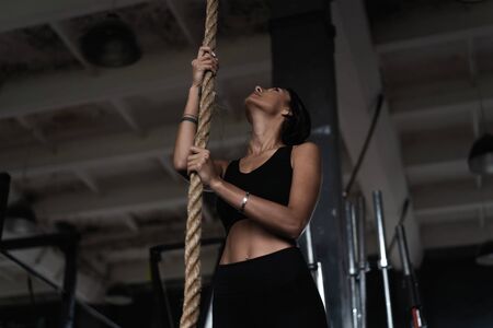 close-up girl is Training with a rope in the gym. concept of fitness