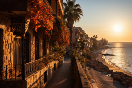Sunset in Jaffa cobblestone streets and old port., generative AI