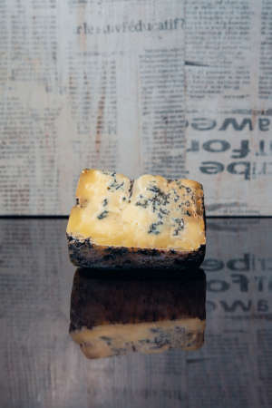 Old, noble blue cheese on a black mirror