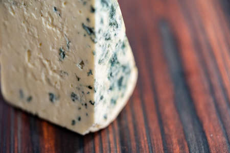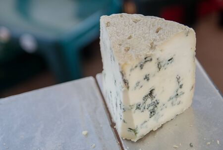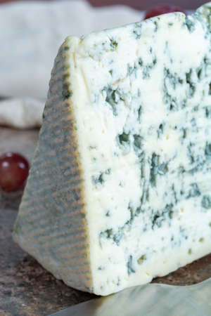 Piece of French blue cheese made from sheep milk close up