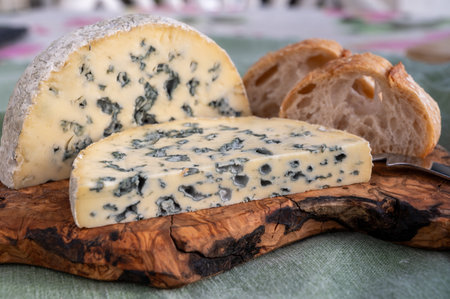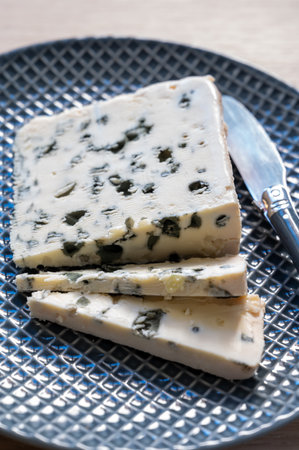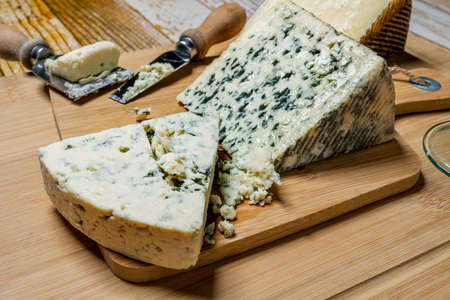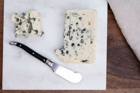 Cheese collection, French blue cheese roquefort from caves of Roquefort-sur-Soulzon, France, close up