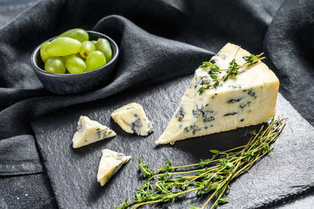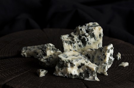Blue cheese on black slate background
