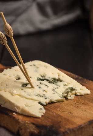 Portion of cheese roquefort at a table rustic. Blue Cheese's flavor, perfect for making sauces