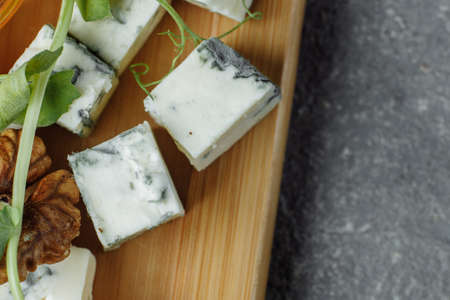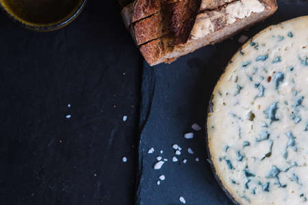 Blue cheese, french appetizer on black slate
