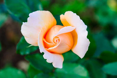 Beautiful orange rose in the garden. Shallow depth of field.