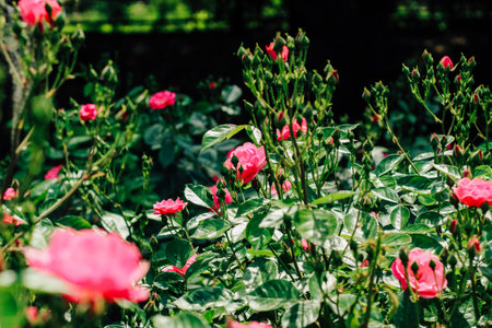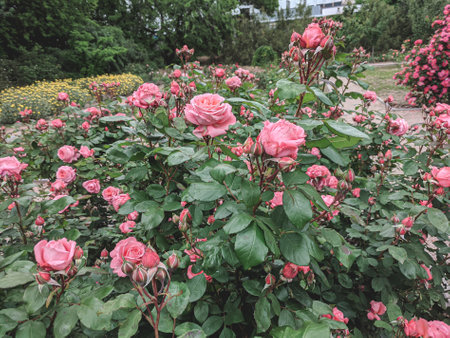 Pink roses blooming in the botanical garden, Prague, Czech Republic