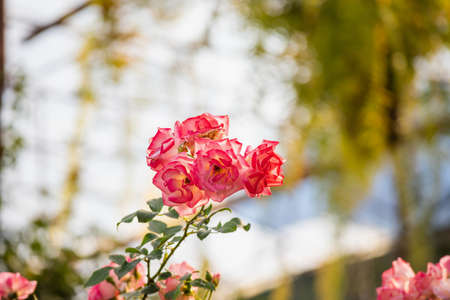 Colorful rose. Pink rose growing in the garden. Beautiful flowers.