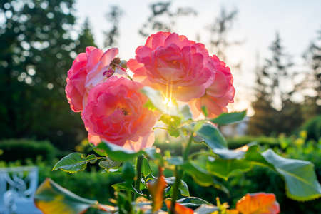 Blooming rose at sunset in Catherine park in Tsarskoe Selo (Pushkin), Saint Petersburg, Russia