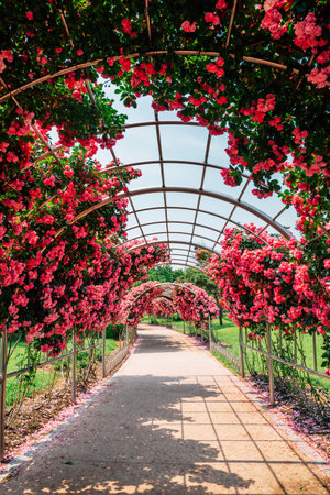 Pink rose tunnel at Ilsan Lake Park in Goyang, Korea